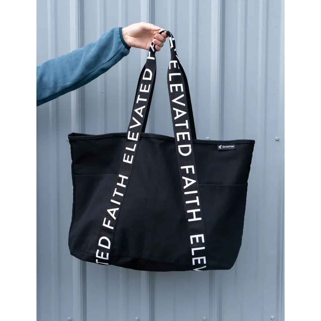 The Large Everyday Black Tote is the perfect functional statement accessory you’ll want to carry with you everywhere. Designed to fit everything from your favorite hoodie to your Bible, this oversized tote is the conversation starter you’ve been waiting for.